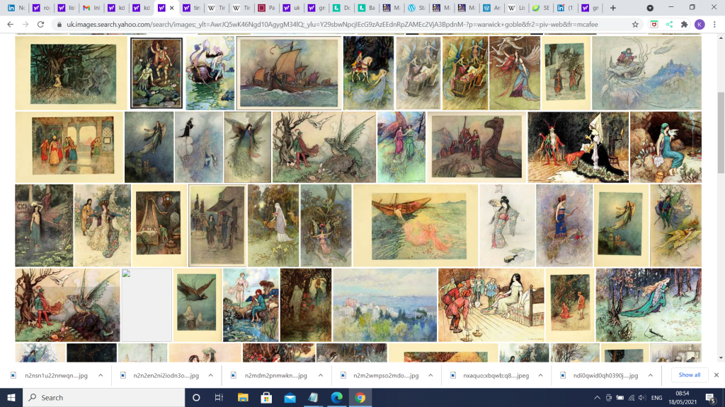 <Warwick Goble (22 November 1862 ā 22 January 1943) was an illustrator of children’s books. He specialized in Japanese and Indian themes’.