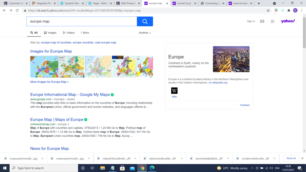 A Search, On, Yahoo, For, “Europe Map”, Returns A Definition,
