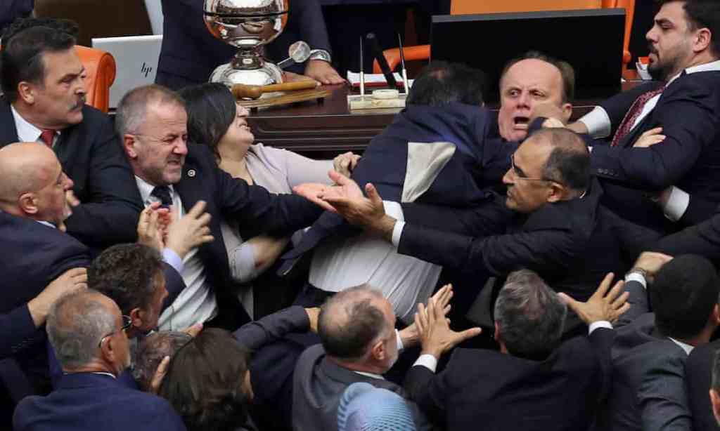 on Watch: Moment brawl breaks out in Turkish parliament – BBC News